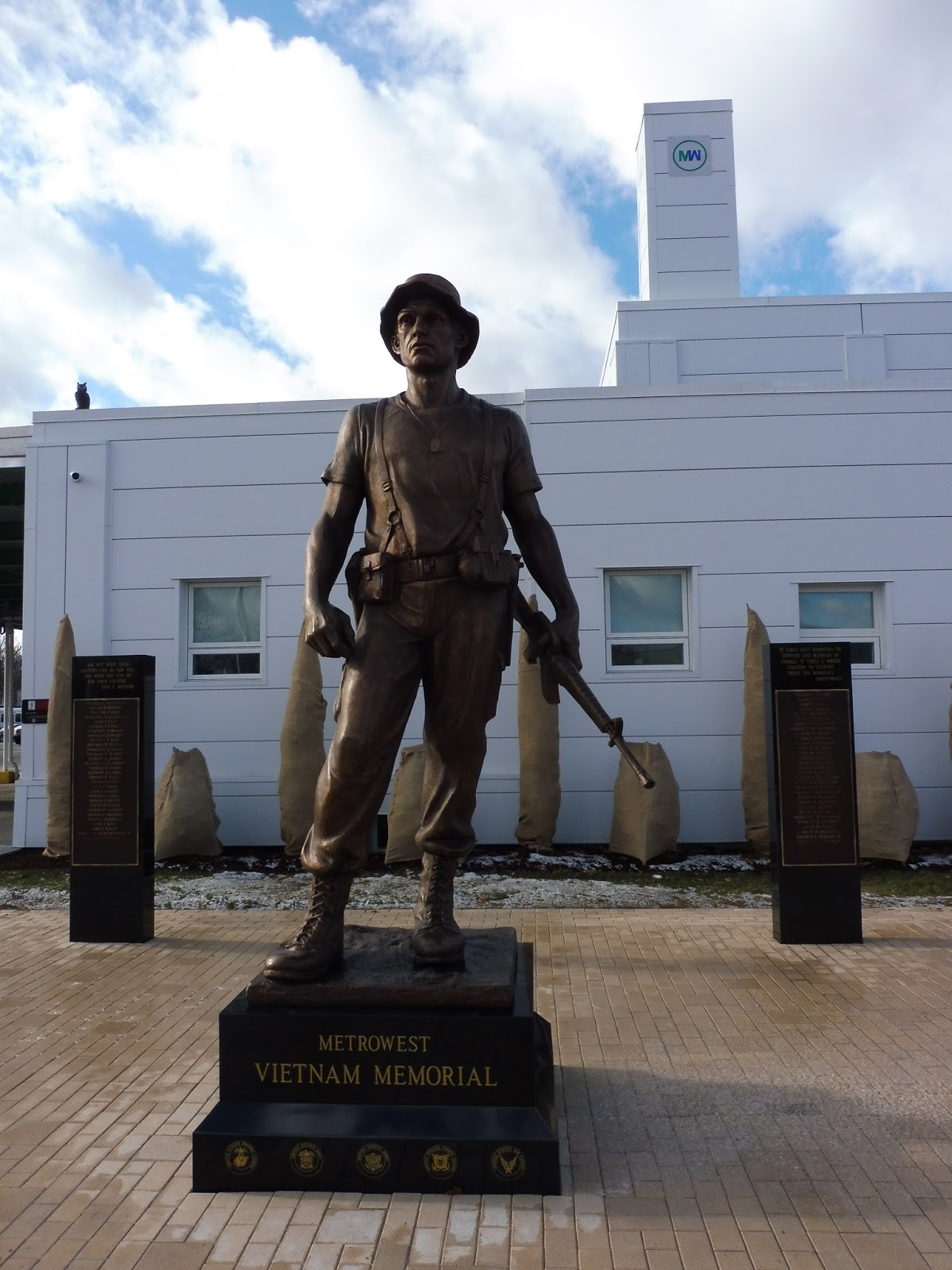 I will say that the hub’s entrance is very nice. A path offers a more direct route to the hub from downtown Framingham, although it’s still pretty out of the way – why can’t pedestrians use the alternate employee entrance from East Street? Outside the main entrance, there’s a memorial to citizens of the MetroWest area who fought in the Vietnam War.