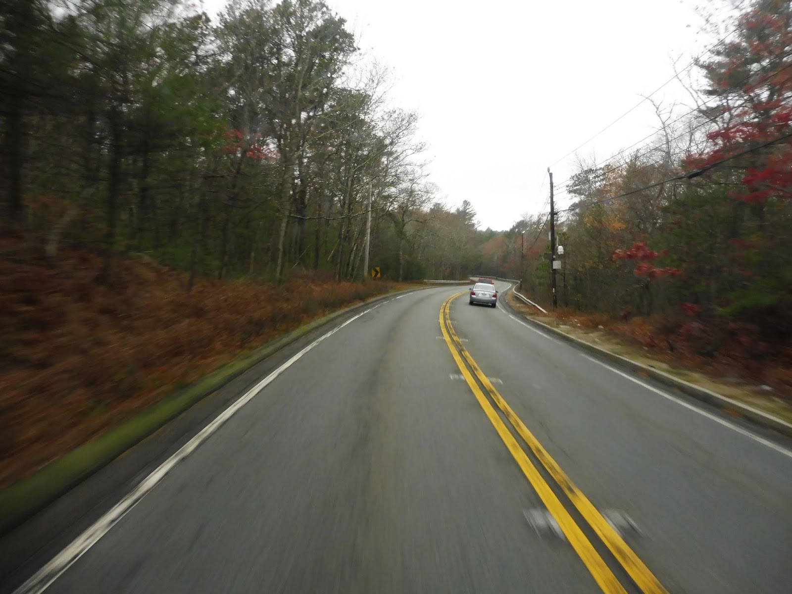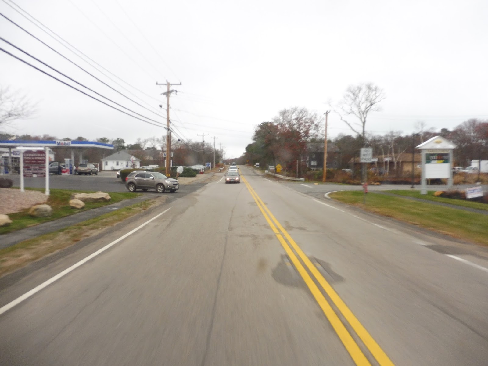 Leaving the start of the route at Stop & Shop, we turned onto State Road, which initially had businesses and parking lots alongside it. However, they ended quickly, and we were soon driving past lots and lots of houses. At one point we came up along a lake briefly, and there was a small business a little past there.