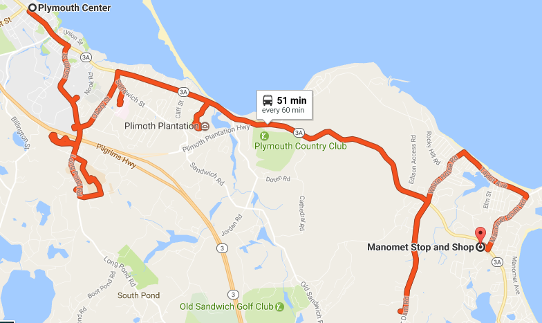 Nearby and Noteworthy: Well, these routes offer the only connection between the Commuter Rail and proper downtown Plymouth, so I would say downtown! It’s a real pain to get to by public transportation, but this is a very historic area with some great sights to see.