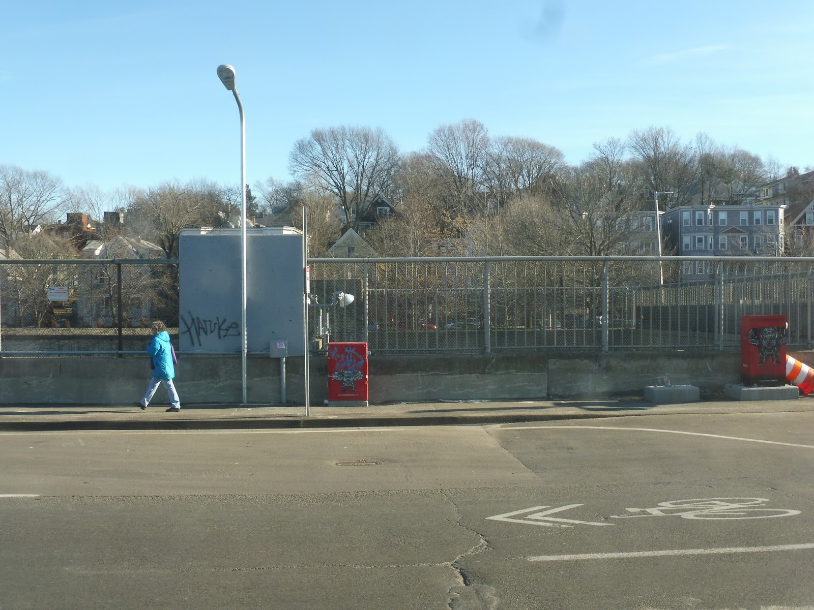 This station offers 96 parking spaces, some lined up along the platform and some in a more typical lot formation. “Gosh, 96 spaces?” you may say, “That doesn’t seem like a lot!” Well…it’s over three times the station’s ridership, so, uh…it’s definitely enough. The MBTA website says the station has eight bike spaces, but I couldn’t find any anywhere.