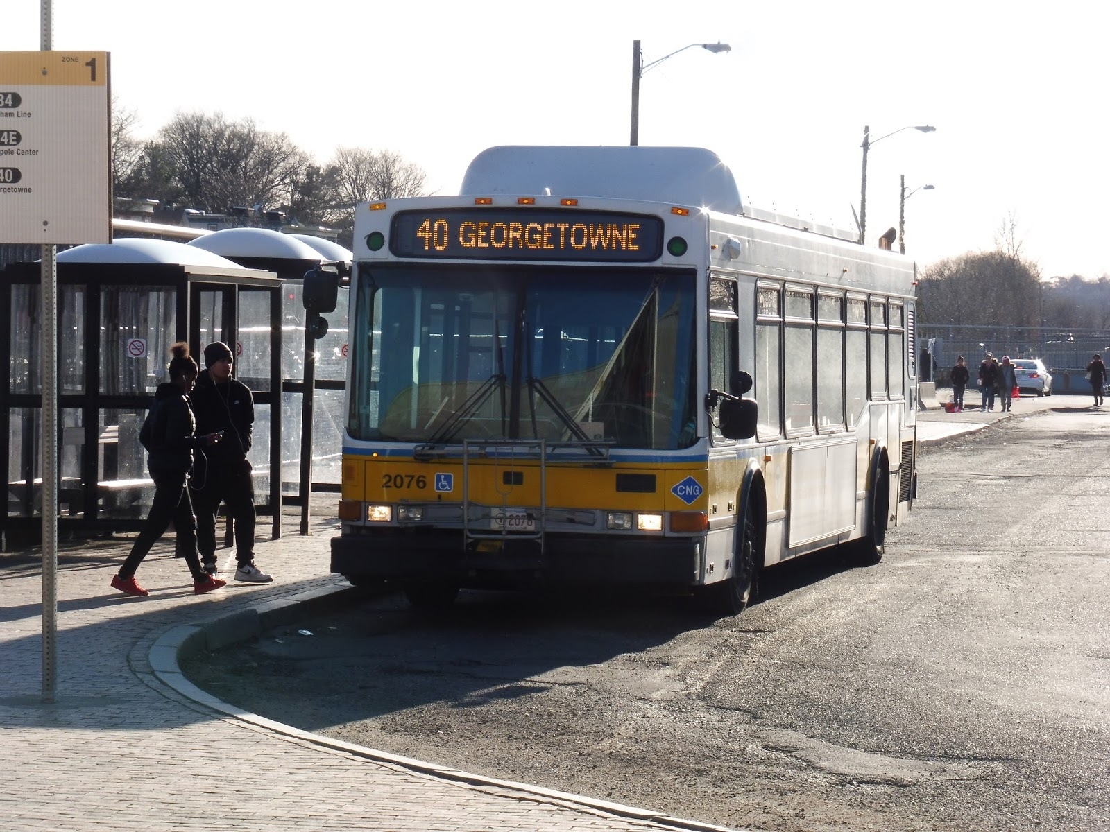 Cons: Are those deviations in Georgetown really necessary? Sure, they do get people, but it would save a lot of time if the bus stayed on Georgetown Drive, did its loop, and returned the way it came. Yeah, people would have to walk a little more, but it could allow the route to run a bit more frequently if it made enough of a time impact. Also, better coordination between the 34, the 34E, and the 40 along Washington Street would allow for crowds to be better spaced-out.