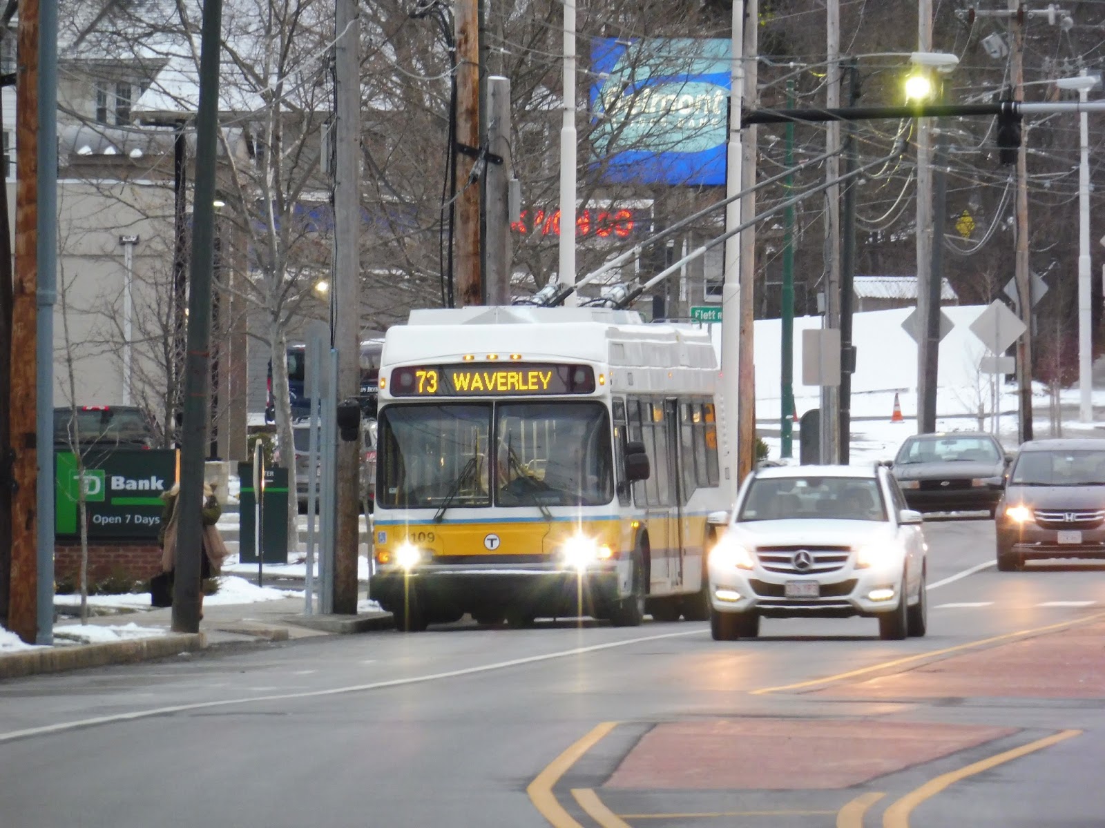 I finally got to ride on the 73 since its long-awaited return to trackless trolleys last Saturday! Turns out I got it right in a sweet spot, too – earlier in the afternoon no trolleys were running because of work, while later in the evening there was a wire problem that prevented trolley operation! But yes, the 73 is finally back, and man, it was so great to see trackless trolleys running up and down the route. I ended up walking back to Aberdeen Ave to snap lots of pictures of the route. Here are the best ones…