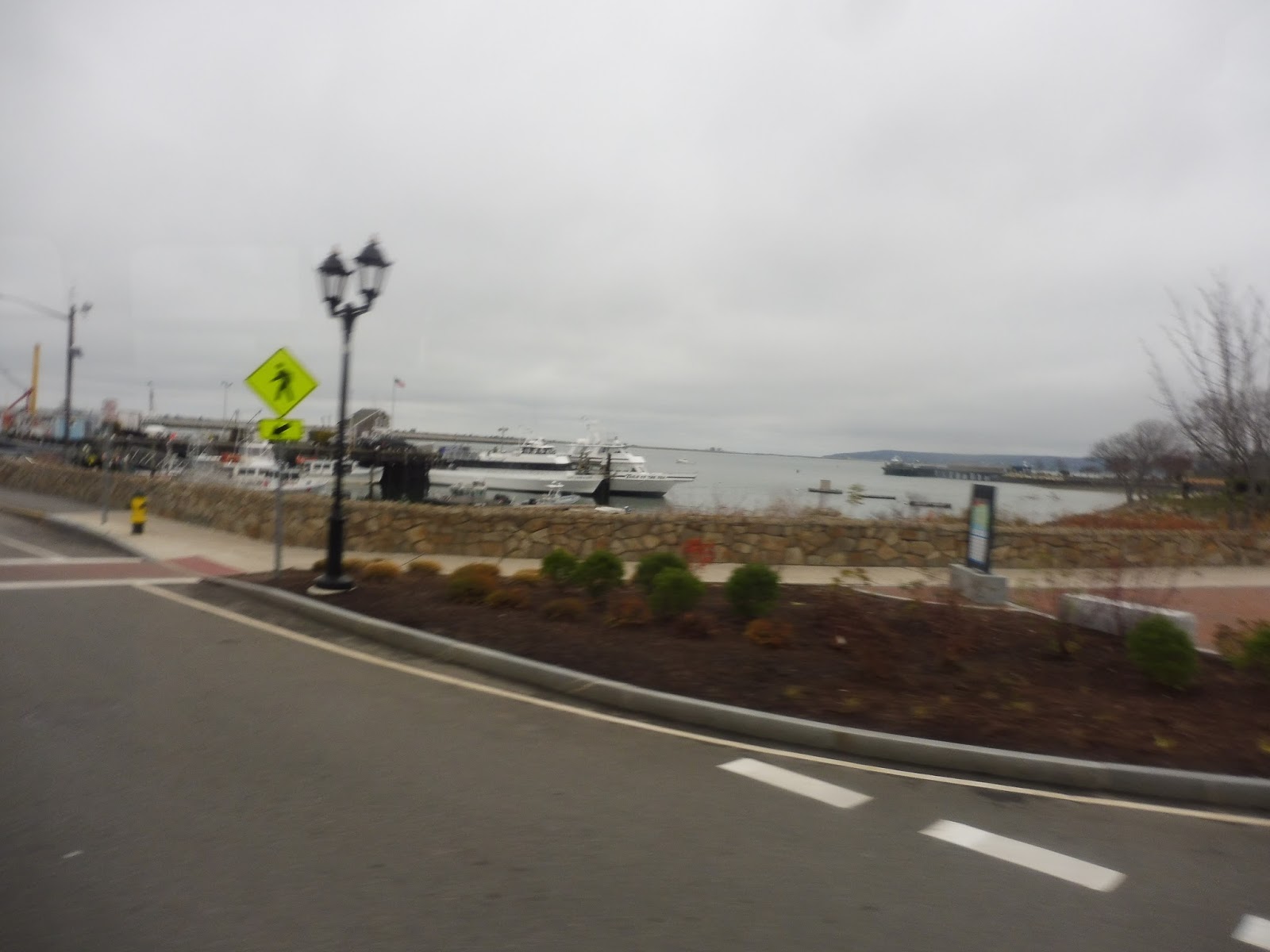 We passed an apartment complex, then some historical-looking buildings. As we passed a nice park, we made our way onto Main Street, running through downtown Plymouth. We headed out onto Water Street for a bit, going by the ocean in order to get down Memorial Drive to return to the main hub. Here, the bus had a bit of a layover before its next circuit.