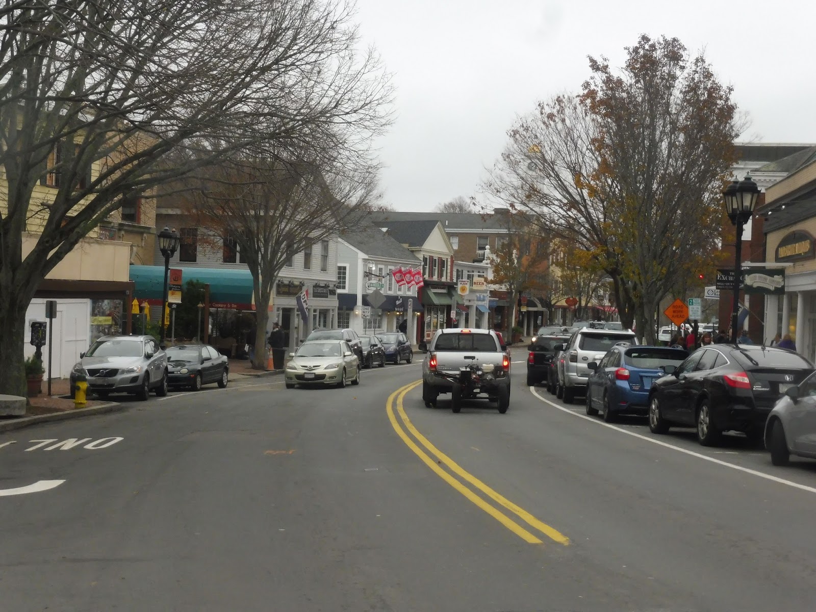 Duxbury Center was an interesting downtown, with a lot of roads awkwardly converging together into what seems like a really dangerous rotary. Businesses were laid out around the intersection of death. First we went up Depot Street in order to loop around the parking lot for a small shopping center, then we returned to the center and made our way onto Washington Street.