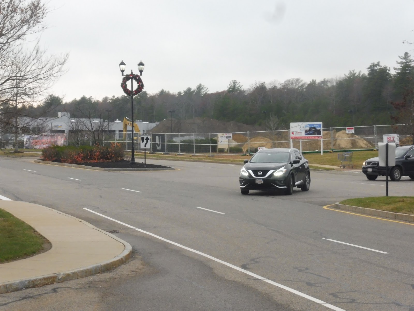 After that mall-serving session, we made our way onto the wide Commerce Way, which was lined with businesses and parking lots. Pretty soon, we reached some sort of developing mall, and deviated to serve the one building that was currently there: Market Basket. We headed down Carver Road from there, which became a mixture of houses and woods.