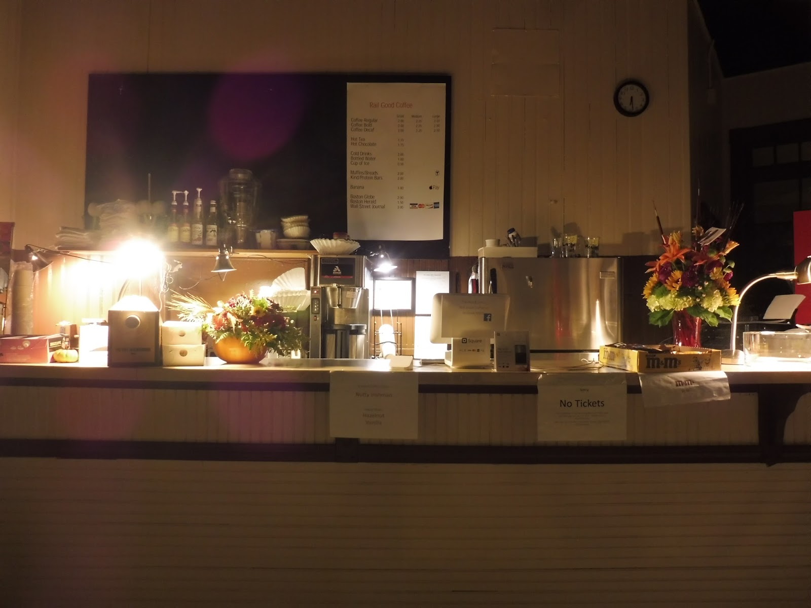 Ahhhh, but the building has an inside, too, and it’s a good one! Unfortunately, it’s only open during the morning rush, but man, it must be a nice place to wait. The main attraction is the amusingly-titled “Rail Good Coffee”, which offers drinks and pastries for rather cheap prices.