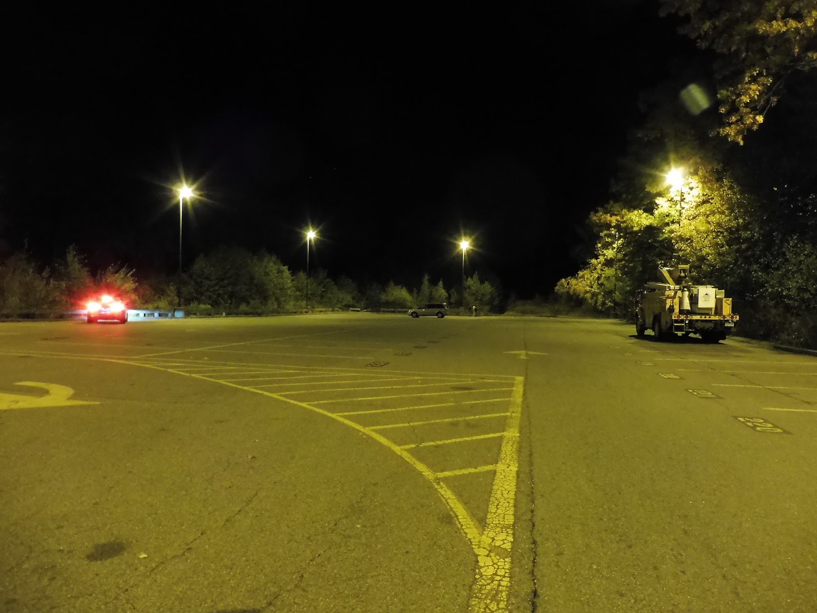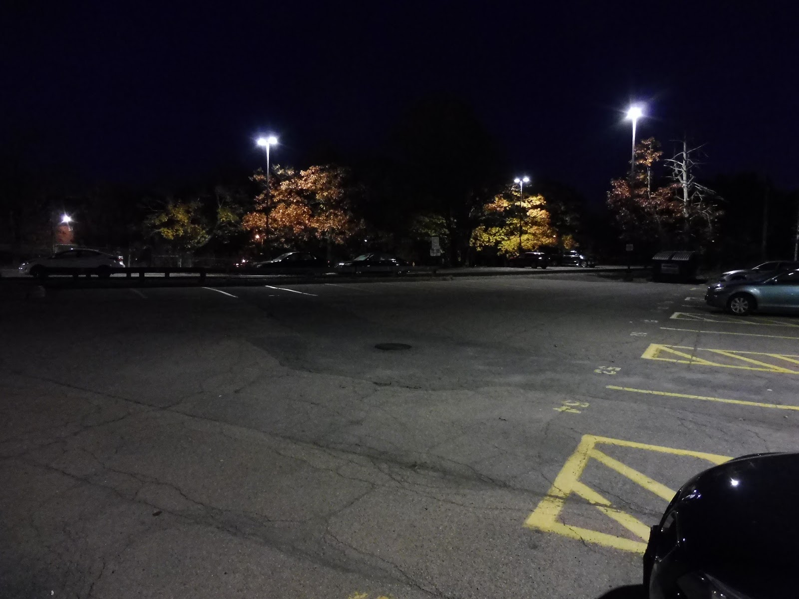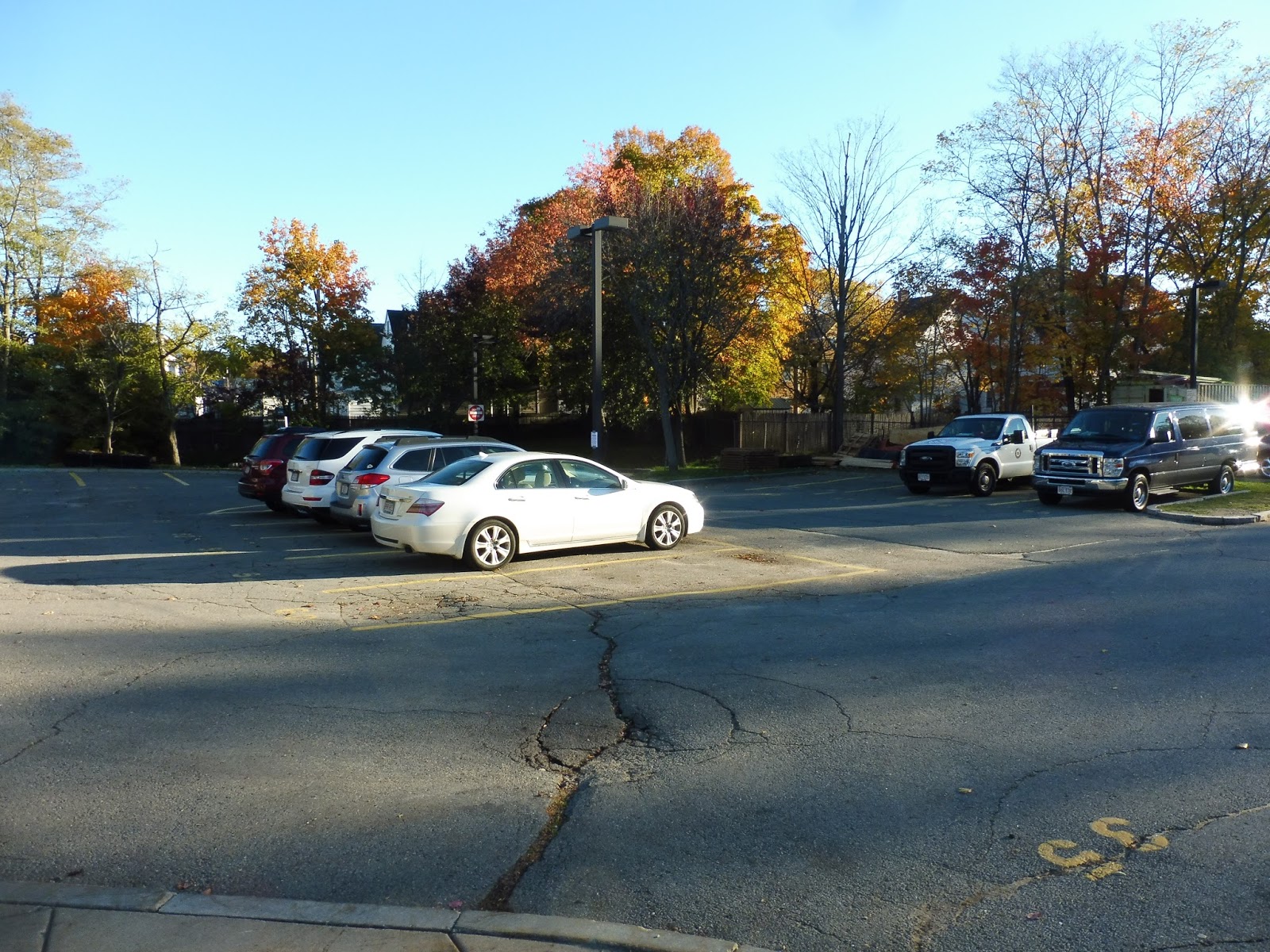 But then there’s the actual paved lot, which is just as weird. Firstly, there’s a fairly small section right next to the street, which also includes the 34E stop. (Imagine that you can ride the bus from here to Forest Hills for 2 bucks!) The bus stop is pretty bad, but other than that, it seems like a normal lot…until you notice the road that leads further into the woods.