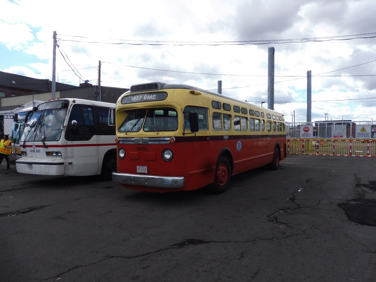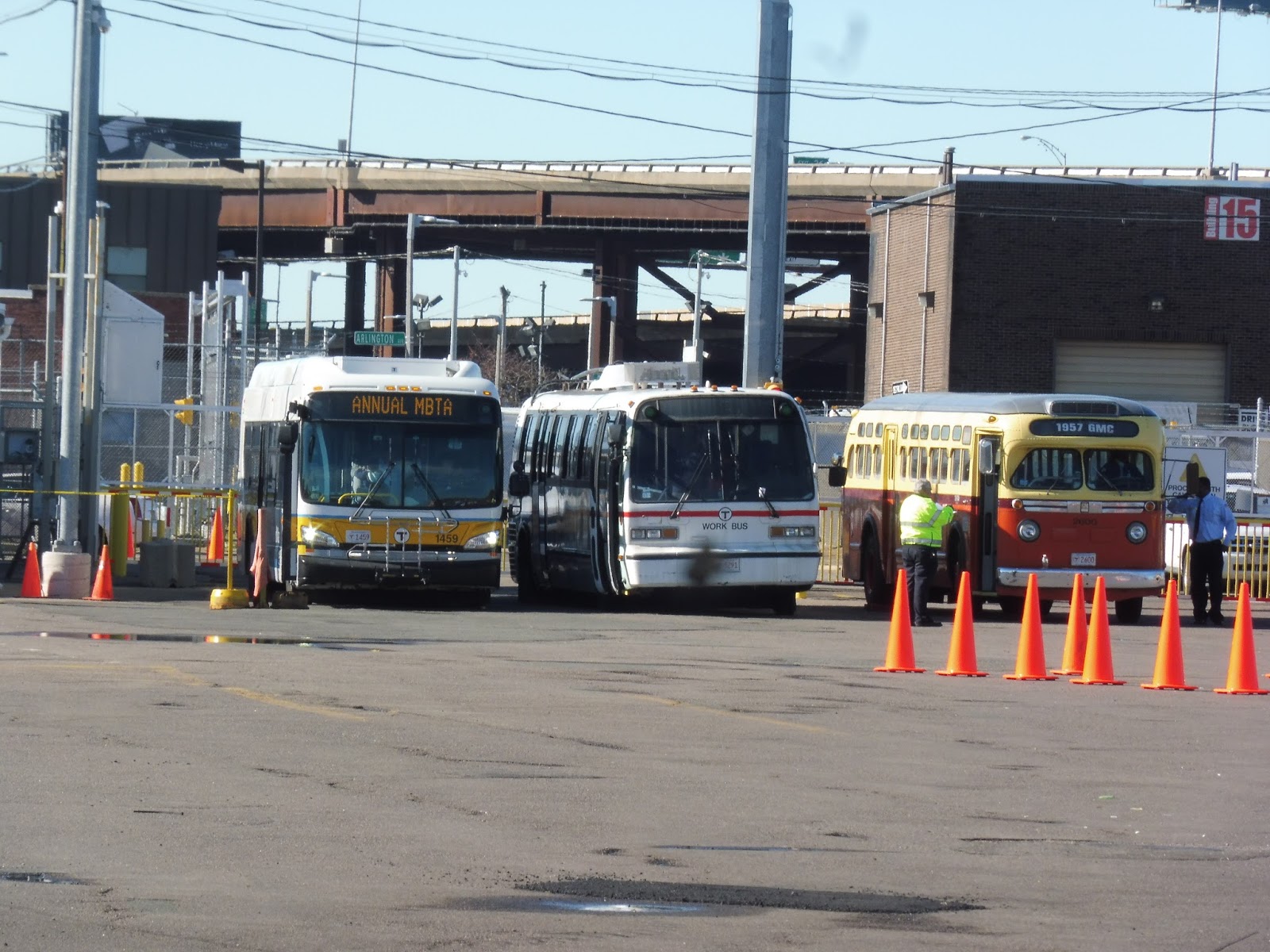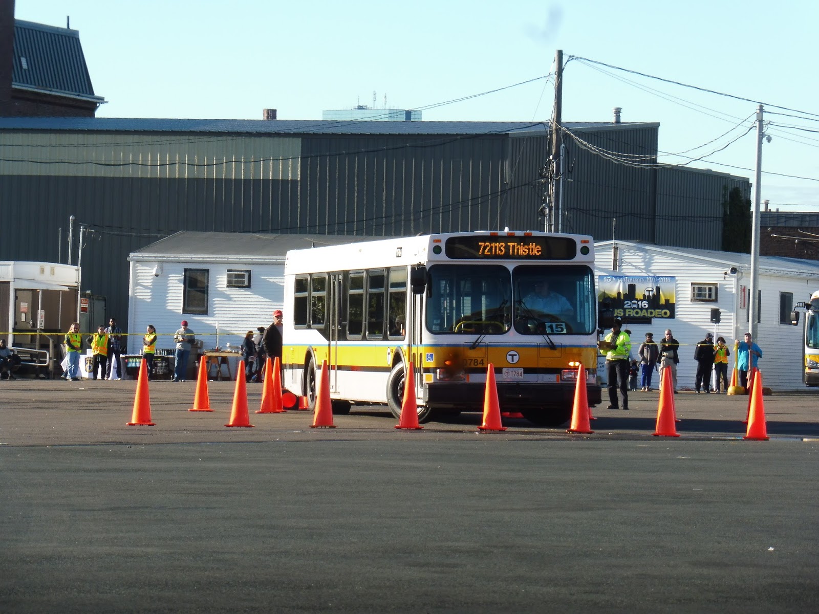 This year, I got the chance to attend the 40th Annual MBTA Bus Roadeo, and it was an absolute blast! My friends Jordan, Nathan, Nick, Sam, and I met up at Sullivan at around 6:30, and then we walked over to Charlestown Garage where the Roadeo was taking place. When we got there, breakfast sandwiches and coffee were available, and people could go inside buses 1459 (an Xcelsior that’s barely been in service), 291 (an RTS converted to a work bus with trolley wires), and 2600 (an ancient GMC from 1957!).
